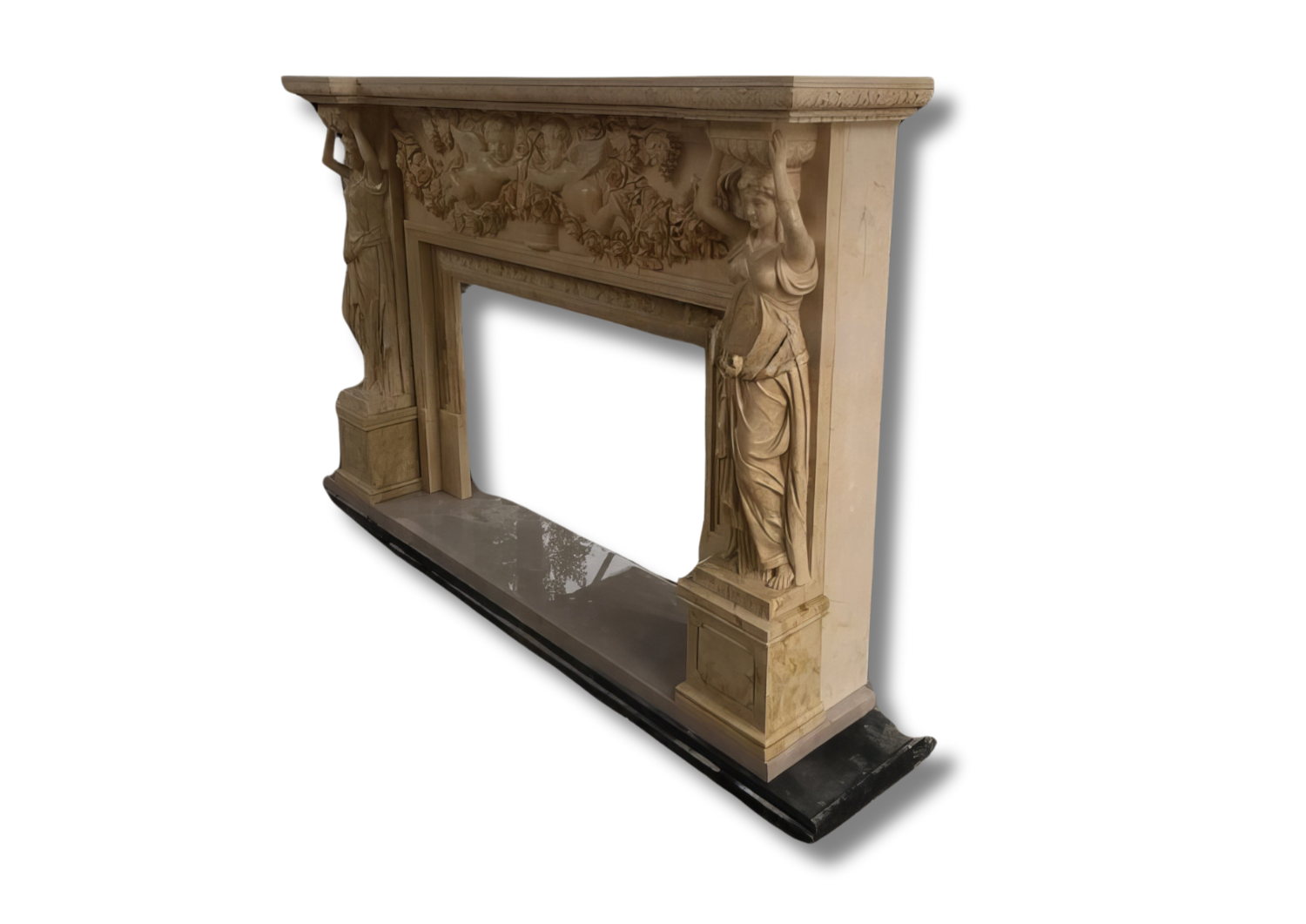 In a luxurious home, this marble fireplace adds elegance. Its natural stone texture and statues create a warm, noble atmosphere, becoming the room’s highlight. For a high - end club lounge, this fireplace combines art and function. The marble’s beauty and carvings attract attention, offering a cozy and sophisticated space.